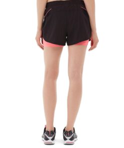 • Black/pink two-layer shorts.